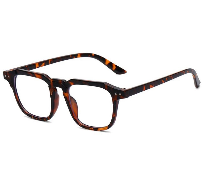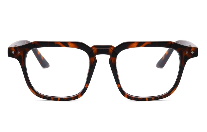 Square frames feature blue light-blocking technology designed to protect the wearer's eyes from extended exposure to screens, including laptops, e-readers, and tablets.